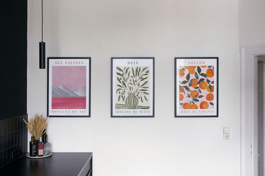 Ein alt bekanntes Layout wurde übernommen und mit den liebsten Urlaubsorten neu bespielt. Passend zu den gewählten mediterranen Orten wurde eine Farbpalette für die Schriftzüge und Motive entwickelt. Die Farben der einzelnen Bilder sind verschieden und dennoch harmonisch. Die Motivwahl an Früchten und Salzbergen gibt den Bildern einen Bezug zum Küchenraum, in dem die Bilder ihren Platz finden. Auf den ersten Blick mögen es Bilder sein, die schon oft gesehen wurden, und dennoch sind es Unikate und ganz persönliche Stücke.